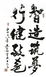 貴州東方機(jī)床有限公司總經(jīng)理?xiàng)罟馄较壬瑸楸緦谜箷?huì)揮毫潑墨,題寫(xiě)“智造筑夢(mèng)、行健致遠(yuǎn)”的題字。