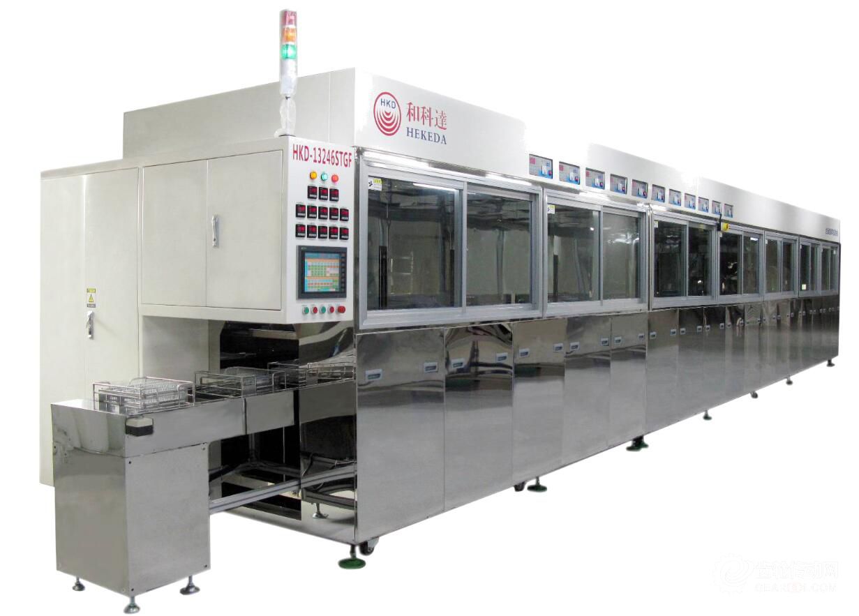 蘇州市和科達超聲設備有限公司(AMTS 2018 展位號:E1-E16)的超聲波清洗機在清洗過程中全自動控制,觸摸屏操作簡單方便,機械手運行平穩可靠。超聲波系統的應用,大大提高了對精密零部件的清洗效果。慢拉脫水工藝有效切除平板式零件表面水漬,有效防止殘留水漬干燥后留下污斑;烘干方式可采用槽式或隧道式熱風烘干,配有耐高溫高效過濾器,保證烘干腔內空氣潔凈,烘干效果好。