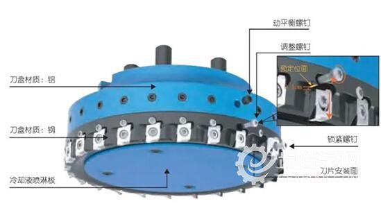 沃爾德的冷卻液噴淋板能使切削液很好地直接輸送到切削區(qū)域,從而改善鋁合金加工的表面質(zhì)量。另外,刀盤底部有連接鋁刀體和鋼刀體的螺釘,請用戶切勿擅動。
