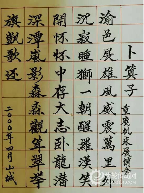 附:楊光平先生于2000年4月在重慶立嘉展上,作詞《卜算子》的原稿。20年前的行業(yè)現(xiàn)狀躍然紙上,清晰了模糊的記憶。