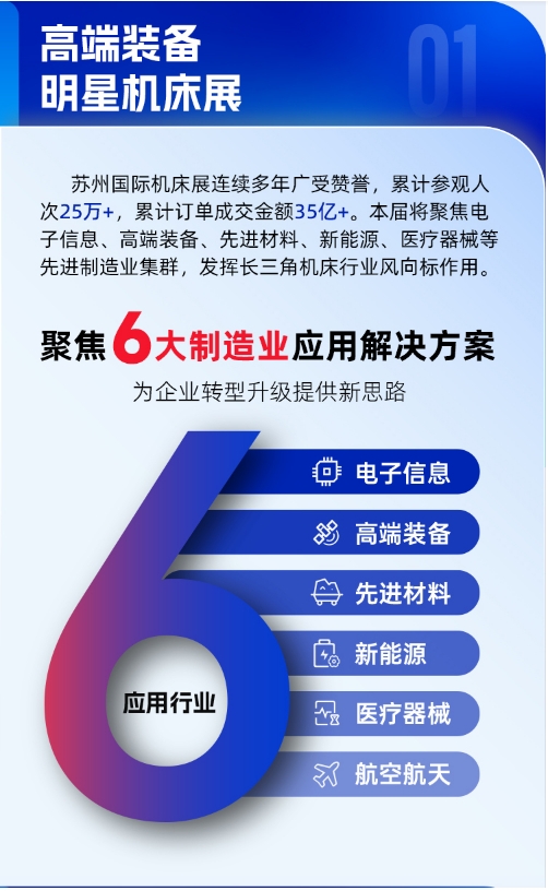 2024年第六屆蘇州國際機(jī)床展將圍繞四大王牌產(chǎn)業(yè),聚焦電子信息、高端裝備、先進(jìn)材料、新能源、醫(yī)療器械等先進(jìn)制造業(yè)集群,發(fā)揮長三角機(jī)床行業(yè)風(fēng)向標(biāo)作用,全面實施工業(yè)智造強(qiáng)基提質(zhì)行動。
