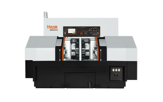 山崎馬扎克(中國)有限公司展出的DT200 L雙主軸雙刀塔車削中心,采用左右對稱結構,配備雙主軸、雙刀塔和15kW高性能內置電主軸。配備非升降式12工位轉塔刀架,換刀速度可達1.4s。最大回轉直徑Φ320mm,最大加工直徑Φ320mm,最大加工長度150mm,主軸通孔直徑Φ76mm。機床左右配置獨立主軸和刀塔,可實現工件自動對接,完成兩道工序的加工。