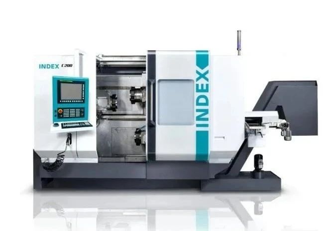 因代克斯貿易(上海)有限公司展出的INDEX C200車削中心,采用垂直床身結構,裝配兩個高功率電主軸、3個刀塔和42把刀具、專利設計的W型刀具定位槽,刀具定位快速準確,可以實現2個或3個刀塔同時加工,并可進行高質量的背部加工,加速度1g,快移速度50m/min。移動導軌有良好的吸震性,垂直床身保證了排屑流暢,可配龍門式工件自動卸料系統,適用于棒料的高效加工及復雜零件的加工。