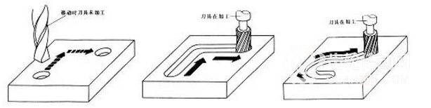 點位控制只要求控制機床的移動部件從一點移動到另一點的準確定位,對于點與點之間的運動軌跡的要求并不嚴格,在移動過程中不進行加工,各坐標軸之間的運動是不相關的。為了實現既快又精確的定位,兩點間位移的移動一般先快速移動,然后慢速趨近定位點,以保證定位精度,如下圖 所示,為點位控制的運動軌跡。