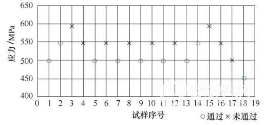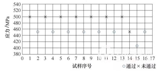 淺層滲氮在長壽命區的升降法測試數據及升降圖如表2、圖1所示。