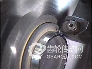 該工藝依靠很多關(guān)鍵因素:首先,為獲得良好的表面粗糙度和最長(zhǎng)的刀具壽命,刀片切削刃的質(zhì)量非常重要。它也是提高切削速度和降低進(jìn)給量所必須的。這減少了切削力,確保極佳的尺寸精度。為了維持尺寸精度,在切削的最后2到3轉(zhuǎn),刀片允許空進(jìn)給。為了避免切削刃廓形影響表面粗糙度,作了一個(gè)小的軸向移動(dòng)。隨著這些技術(shù)的應(yīng)用和有良好的機(jī)床配置,獲得一致性很高的表面粗糙度和零件精度是可行的。在齒輪車(chē)削中,插車(chē)已經(jīng)被用于加工齒面和同步嚙合錐面。已經(jīng)用PCBN插車(chē)加工的最大長(zhǎng)度是16 mm。