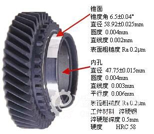 第一個(gè)關(guān)鍵的地方是同步嚙合齒輪的錐面。對(duì)于加工這個(gè)表面,有三個(gè)選擇:(i)傳統(tǒng)車(chē)削,(ii)插車(chē),(iii)修光刃技術(shù)。