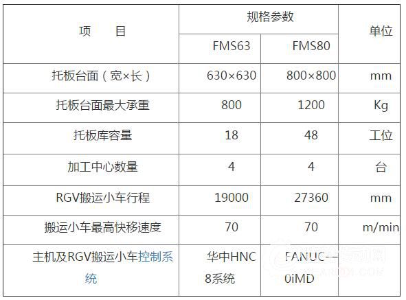 表 FMS63和FMS80的主要技術(shù)參數(shù)