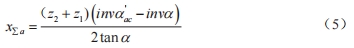在已知太陽輪齒數的情況下,可以確定齒輪模數 m 和中心距 a,并根據公共中心距選取各齒輪的變位方法,由式(4)計算中心距變動系數:
