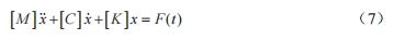 式中,[M]、[C]、[K] 分別為質量矩陣、阻尼矩陣、剛度矩陣,