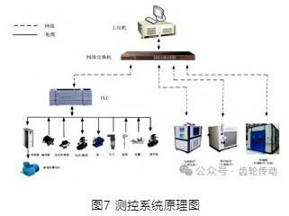 測控系統(tǒng)實(shí)現(xiàn)對多聯(lián)泛擺線齒輪泵綜合試驗(yàn)臺中主軸驅(qū)動裝置、溫度控制裝置、抽真空裝置、測量系統(tǒng)、過濾裝置、油箱/管路等系統(tǒng)的電氣部分進(jìn)行控制、顯示和測量、記錄等功能(圖 7)。包括:上位機(jī)、下位機(jī)、電器柜、數(shù)據(jù)采集卡、信號線等,可實(shí)現(xiàn) 試驗(yàn)臺狀態(tài)的自動閉環(huán)控制、自動測量記錄、繪制性能曲線等功能。電器柜內(nèi)設(shè)置通道計(jì)量接口,方便數(shù)據(jù)的在線計(jì)量。