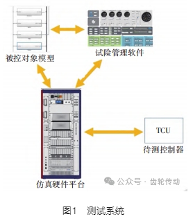 測試系統主要包括待測的 TCU、仿真硬件平臺、已校準的被控對象模型和試驗管理軟件,如圖1 所示。
