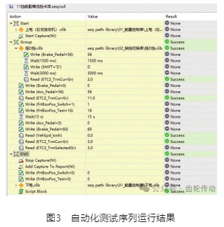 運行自動化測試序列,測試結果如圖 3 所示。其中,None表示無結果,Success表示成功。
