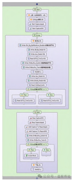 a. Start 部分:新增第 2 行 CANape 調用 .clib,作用為調用 CANape 工具 ,新增第 3 行開始記錄 CANape數據操作,用于調用TCU內部狀態量。