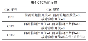 其中,本地變量適用于CTC功能,通過不同CTC 可對本地變量進行賦值,從而實現不同工況測試,如表 4 所示,CTC、CTC1 和 CTC2 分別對應正常換擋、無故障應對條件下換擋和故障應對條件下前副箱低擋換擋工況。