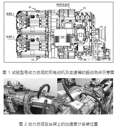 振動(dòng)加速度傳感器的測點(diǎn)位置如圖 1 所示。在臺(tái)架上的實(shí)際測試測點(diǎn)如圖 2 所示。