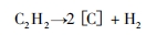 乙炔的結構式為 H-C≡C-H,為不飽和烴,由一個三鍵將兩個碳原子相連。乙炔在真空及滲碳溫度下的分解反應如下: