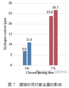 經不同鍍鉻時間后,鍍鉻區域的氫含量測試結果見圖 7。