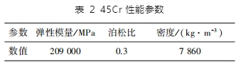 對材質為 45Cr 的弧齒錐齒輪開展動力學仿真測試,各參數如表 2 所示。