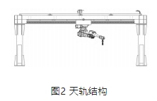 機器人的安裝方式可以分為固定安裝方式和增加第七軸的安裝方式。考慮到機器人滿足兩臺機床的上下料, 以及零件在兩臺機床的流轉,本文設計為增加第七軸的安裝方式。第七軸一般有地軌、立軌以及天軌三種安裝方式。采用天軌安裝可以節省地面空間,擴大機械手的工作范圍,同時避免與地面設備和人員的干涉。基于這些優點,本設計選擇天軌安裝方式。根據上下料的工作區域和機器人的工作范圍,同時考慮天軌與周邊設備、建筑物結構等的空間關系,避免干涉和碰撞,確定天軌的行程為 5m,安裝高度為2m,橫梁中心與加工中心正面擋板的水平距離為1m。