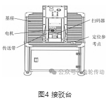 接駁臺由基座、電機、傳送帶、耐磨條、掃碼器等部分組成。由電機驅動,帶動同步帶運動進行傳送物料。結構示意圖如圖4所示。