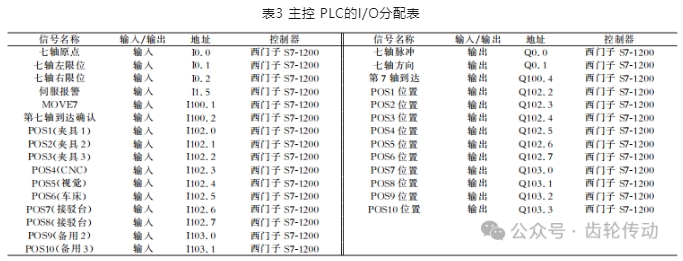 PLC控制過程簡單來說就是將外部輸入信號轉換為外部設備能夠識別的電信號,從而控制外部的執行機構。要實現 PLC與其它設備之間能夠準確、穩定和高效地進行數據交換和通信,就要基于通信協議合理進行各硬件的 I/O 接口設計。根據各硬件的輸入輸出信號的需求分析, 包括來自傳感器的模擬量和數字量輸入信號,以及向執行器發送的模擬量和數字量輸出信號,選用相應的輸入輸出模塊,并進行了地址分配,遵循電氣連接與布線規范,并將在系統搭建完成后進行全面測試與驗證。主控 PLC 的 I/O分配如表3。