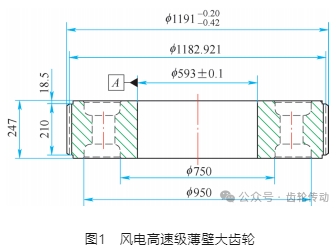 高速級薄壁齒輪一般涉及到雙饋增速器機型齒輪箱中高速大齒輪,其主要生產流程為:鍛件正火→粗車→調質→半精車→鏜孔→滾齒→滲碳淬火→精車→磨齒。