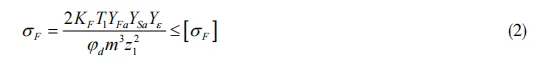 式中:KF為載荷系數,KF=KAKVKFaKFβ ;YFa為齒形系數;YSa為應力修正系數;Yε為重合度系數;φd=b/d1 。