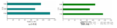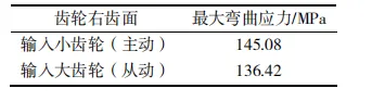 將實測的基本參數和表1數據代入式(2)得到彎曲應力,結果如表2所示。通常在起步階段,彎曲應力最大。因此針對不同的啟動速度(1500,2800,10000r/min),目標為得到最大彎曲應力,在建立的齒輪模型載荷譜靜態進行計算。這樣能夠保證齒輪在各種工況下均能正常工作,可以得到不同啟動速度下的齒輪載荷譜,并進一步計算出對應的最大彎曲應力。用Romax Designer模擬仿真如圖4所示。