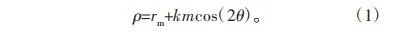 為了方便計算,本文的波發(fā)生器將采用余弦曲線,根據(jù)柔輪中性層的不變形理論,可以將其看作波發(fā)生器的等距曲線,則柔輪中性層曲線在極坐標(biāo)下可以表示為