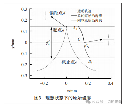 原始柔輪凸齒廓表達(dá)式為: