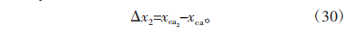 我們發(fā)現(xiàn)經(jīng)過第一次修形后剛輪凸齒廓末端嚙合情況較好,而初始端的側(cè)隙較大。這是因為修形時齒廓末端所采用的共軛點是由柔輪凸齒廓末端所構(gòu)成的,因此將此處的修形量均分給2段原始齒廓是合理的。然而初始端的共軛點并非由柔輪原始凸齒廓的初始端所構(gòu)成,因此在此處將其作為修形量不合理。針對這種情況,采取對齒廓進(jìn)行二次修形的方式來降低初始段的側(cè)隙。同樣使用boundary函數(shù)提取出剛輪的共軛點,假設(shè)此時剛輪的共軛曲線的橫坐標(biāo)為xca2 ,則修形量表示為