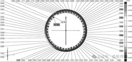 優化方案2:將齒轂斷裂的齒面進行減薄,因為與之配合的齒套齒面單個周向累計誤差是0.041,如圖6所示。因此推薦齒轂齒面減薄0.04。