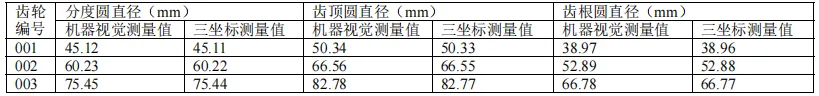 由表可知,機(jī)器視覺測(cè)量系統(tǒng)與傳統(tǒng)測(cè)量方法結(jié)果接近,測(cè)量誤差可控制在±0.02mm 以內(nèi),能滿足汽車齒輪生產(chǎn)質(zhì)量檢測(cè)要求。可見,此方法測(cè)量精度和效率高,可有效提升汽車齒輪生產(chǎn)質(zhì)量檢測(cè)水平,為大規(guī)模、高效率生產(chǎn)提供保障。
