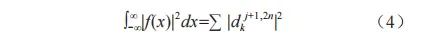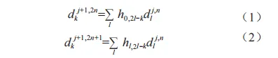 式中,dlj,n為 第 j 級小波包系數;dlj+1,n為第j+1級小波包系數;h0,2l-k、hl,2l-k為分解系數;g0,l-2k、gl,l-2k為重構系數