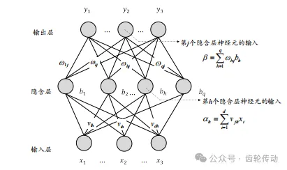 BP神經網絡:20世紀80年代,Rumelhart等提出了反向傳播算法,即BP神經網絡算法,這是一種多層前饋網絡模型。這種網絡不需要預先定義輸入與輸出之間的數學關系,而是通過模擬人腦的學習機制,逐步掌握這些規則。當輸入值已知時,網絡經過訓練可以預測出盡可能接近實際的輸出值。BP神經網絡的核心是神經元模型,這一模型旨在模擬生物神經元的基本功能。在神經網絡中,神經元通過連接進行信息傳遞。當某個神經元的膜電位達到特定閾值時,該神經元會被激活,并向其他連接的神經元發送信號。這種網絡通常由3部分組成:輸入層負責接收外部數據,隱含層進行數據處理和特征提取,輸出層生成最終結果。BP神經網絡的學習過程使用如最速下降法等優化算法來減少輸出誤差。通過誤差反向傳播,網絡能夠調整各層的權重和閾值。在正向傳播階段,信號從輸入層經過隱含層傳遞到輸出層;而在反向傳播階段,網絡根據誤差調整各層的參數。這種機制使BP神經網絡能夠學習并實現復雜的非線性輸入輸出映射關系。BP神經網絡結構及算法中的變量符號一般如圖2所示。