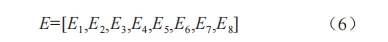 小波包特征能量提取:采用db3小波基對4 種不同狀態的信號進行3層小波包分解,可以得到8個不同頻帶的信號特征。為了實現對信號的有效降噪,首先需要對這8個信號特征進行重構,并計算各個頻段的能量值,這些能量值分別標記為E1至E8 。通過將這8個頻帶的能量值組合成一個能量特征向量,能夠為信號的后續分析和處理提供有用的特征信息。在具體操作中,重構過程確保了信號的降噪效果,通過精確計算每個頻段的能量值,能夠提取出信號在不同頻帶上的重要特征。這些能量值反映了信號在各個頻段的能量分布情況,因此,它們對于信號的故障檢測和診斷至關重要。圖3展示了不同故障狀態下信號的頻段能量分布情況,直觀地呈現了各個頻段的能量特征及其在不同故障條件下的變化。這些信息可以用于進一步分析和識別不同的故障模式。