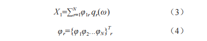是加速度響應向量;X.是速度響應向量;X是位移響應向量;F(t) 代表N維激振力。該方程可轉換為模態坐標下的方程,如下: