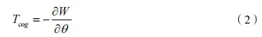 齒槽轉矩分析:驅動電機齒槽轉矩由轉子永磁體與定子齒槽之間的磁阻變化引起,其周期性波動會導致轉矩脈動和振動,磁能對轉子位置的導數計算公式: