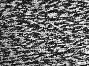 帶狀組織:帶狀組織對齒輪的切向沖擊性能有較大影響,會造成材料的各向異性,其本質是鑄坯凝固時造成的枝晶偏析,造成材料的各向異性,進而降低材料的力學性能、切削性能以及強度及韌性。帶狀組織也無法通過后續的加工工藝如熱處理進行消除,在生產過程中,一般根據GB/T 34474.1或者ASTM E1268等標準對非金屬夾雜進行測定與判定。在汽車變速器設計開發中,通常要求齒輪原材料的帶狀結構不得超過2級,圖4為齒輪材料常見的帶狀組織金相圖。