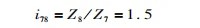由于結構設計的需要,選擇選擋軸上齒輪6齒數Z6為19,錐齒輪齒數Z5為81,傳動比i56為: