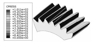 細高齒主動輪齒面最大接觸應力為1011MPa,如圖4(a)所示,較常規齒的1295MPa