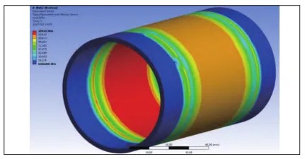 有限元計算結果表明,正常工況下膨脹套最大等效應力為128.41MPa,有限元結果與理論計算結果的相對誤差僅為2.9%。