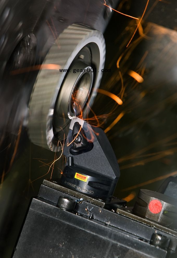 切削可以為連續(xù)或斷續(xù)切削,就如齒輪輪齒或軸特性一樣,通過選擇合適的刀片材質(zhì)可以對此類切削進行最佳優(yōu)化。表面質(zhì)量通常可達到Rz 1或Ra 0.25 微米,尺寸公差保持在0.01 mm以內(nèi)。采用高進給可獲得良好的表面光潔度:進給率為0.3 mm/r時,光潔度為Ra 0.3微米;進給率為0.4 mm/r時,光潔度可達Ra 0.5微米;進給率為0.5mm/r時,光潔度可達Ra 0.8微米。
