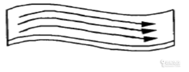 在航天整體結(jié)構(gòu)件的大型復(fù)雜曲面高速切削加工中,曲面曲率變化大時(shí),應(yīng)以最大曲率半徑方向作為最優(yōu)走刀方向,如圖2.1所示;曲面曲率變化小時(shí),曲率半徑對(duì)走刀方向的影響減弱,宜選擇單條刀軌平均長度最長的走刀方向,如圖2.2所示。