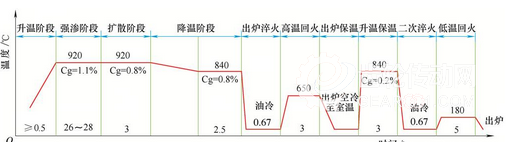 圖4 SNCM420H-K齒輪滲碳直接淬火工藝曲線圖