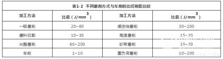 由于磨削時小號的功率多,而每個磨粒切削刃切除的磨屑體積很小,被磨的材料細分程度大,因而切除單位體積金屬所消耗的能量(比磨削能)比車削時要大得多。