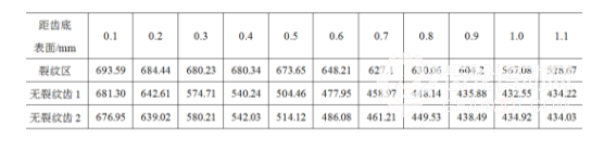 表2 齒輪軸齒底硬度梯度(HV0.5)