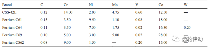 美國成功研制出 CSS-42L 第三代滲碳齒輪鋼后,我國北京鋼鐵研究總院開始仿制,進行了材料工程化應用研究探索工作。隨后,中國航發航材院、寶鋼、哈爾濱工業大學、昆明理工大學等相繼開展了國產化材料牌號研制及相關熱處理工藝制度的研究工作,目前已知 CSS-42L 衍生國產化材料牌號除15Cr14Co12Mo4Ni2VNb、15Cr14Co12Mo5Ni 兩種之外,還有 14Cr14Co13Mo4、BG800。