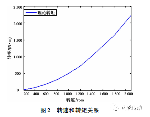 變速箱配有液力緩行器,其處于變矩器和行星齒輪之間,由變速箱的殼體組成封閉空腔,內(nèi)部有轉(zhuǎn)子可以隨傳動軸轉(zhuǎn)動。車輛在平路正常行駛時,液力緩行器空腔內(nèi)沒有液壓油,轉(zhuǎn)子在空腔內(nèi)轉(zhuǎn)動,攪動空氣只損耗極少的功率,車輛下坡時,通過液控閥向液力緩行器空腔充油液,轉(zhuǎn)子轉(zhuǎn)動油液造成阻力,用于抵消下坡產(chǎn)生過多的機械能,對汽車起輔助制動作用。液力緩行器轉(zhuǎn)子轉(zhuǎn)速與轉(zhuǎn)矩的關(guān)系如圖 2 所示。